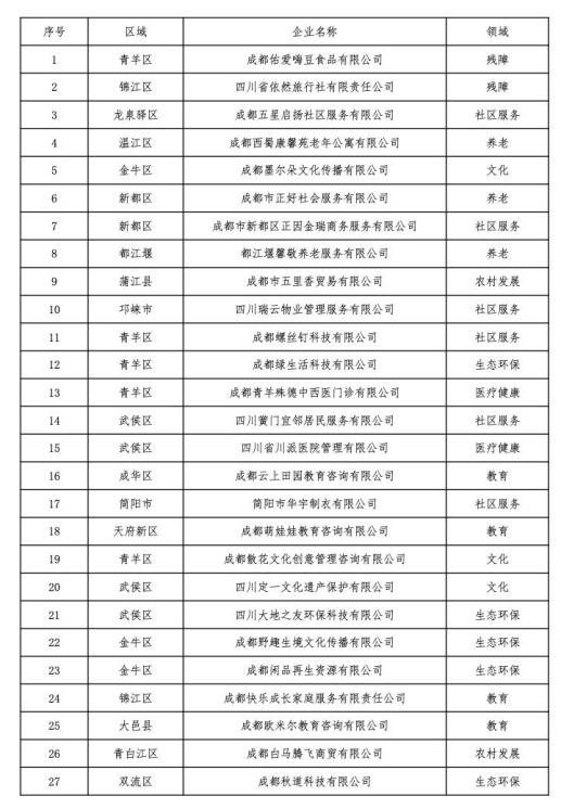 2019年成都市社会企业名单: